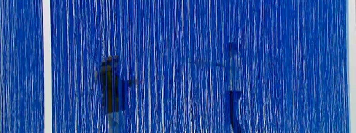 Jesus Rafael Soto also moved on to explore the effects of moving bands of colour – here, ribbons of coloured PVC – which are animated and activated by the physical passage of the spectators through the optical field.