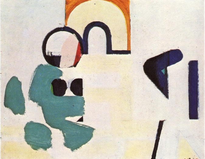 From Kenneth Noland and a wide range of US abstract painters, Hodgkin draws some of the boldness of his stripes and blocks of colour. Abstract art, since the early efforts of Kandisnky and others at the beginning of the 20th-century, has developed its own, more or less, autonomous stylistic range. It is in fact hard to avoid ‘quoting’ abstract painters, when a wash of sombre brown and ochre instantly recalls Rothko, or a vertical ‘zip’ of one colour on a contrasting colour inevitably brings Barnett Newman to mind.
