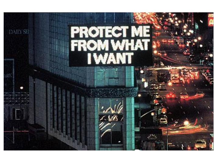 Jenny Holzer, US (b. 1950) “Truisms” (Spectacolor Display Board, Times Square, NY). US artist Jenny Holzer creates textual displays using contemporary advertising electronic billboards sited in public spaces. Her message is usually provocative, striking and highlights fractures and contradictions in the social fabric. Using the technology and the spaces/locations of consumerism, she critiques both and always seeks for a more radical, humane alternative to the rule of money and power.
