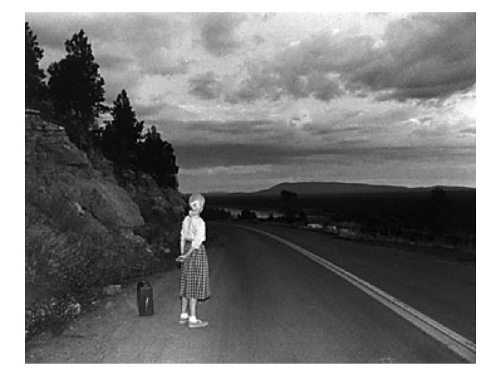 The subject of Cindy Sherman‘s (US, b.1954) work is always herself, or rather the Self and how it is constructed through imagery. Starting in her twenties she has always found new ways to photograph herself, in multiple disguises, wearing costumes, make-up, wigs, even prosthetic body parts, and posing herself in carefully elaborated stage sets to suggest an era or environment. Her ‘Untitled Film Stills” in black and white suggested scenes from a vaguely familiar 1950s movie with herself as housewife, film star (with references to Marilyn Monroe, or a character from a road-movie) or a vulnerable female in or escaping from a dangerous situation. It is important that she takes the photos herself so that she is in total control of her image (not a male photographer for example) as she is always exploring aspects of female identity and self-perception, using herself as her basic material. She demonstrates how mutable and prone to pressures contemporary female identity is.
