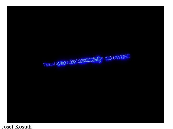 US Conceptual artist Josef Kosuth (b.1945) uses written language as his principal artistic ‘material’. Texts, printed or as here, in neon form spell out a philosophical message about perception, about the nature of art and its relation to language. Linguistic Philosopher Ludwig Wittgenstein is a constant source of inspiration. He was even part of a UK/US conceptual grouping called “Art & Language” in the 1960s, whose magazine of the same name contains some the key documents of conceptual art.