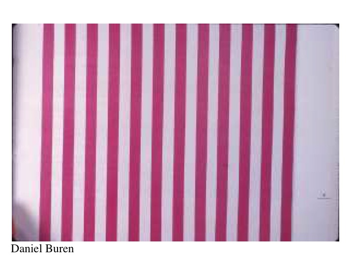 French Conceptual artist Daniel Buren (b.1938) developed his custom ‘signature’ stripes in 1965 whilst at the Grapetree Bay Hotel on the Caribbean island of Saint Croix, where he was contracted to make frescoes. He abandoned traditional painting for the 8.7 cm-wide vertical stripes, alternating between white and one other colour, (from a simple range of pink, blue, yellow, black), derived from beach-side deck-chair fabric. He ‘posted’, without permission, fragments of these paintings, poster-sized- around the streets and Metro of Paris as a kind of urban guerrilla art, and has been using this format ever since.